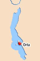 Westlich vom Lago Maggiore - durch eine hohe Hügelkette von diesem getrennt - erstreckt sich der 13,4 km lange und bis zu 2,5 km breite Lago d'Orta (Ortasee). Der See liegt 290 m über dem Meeresspiegel.